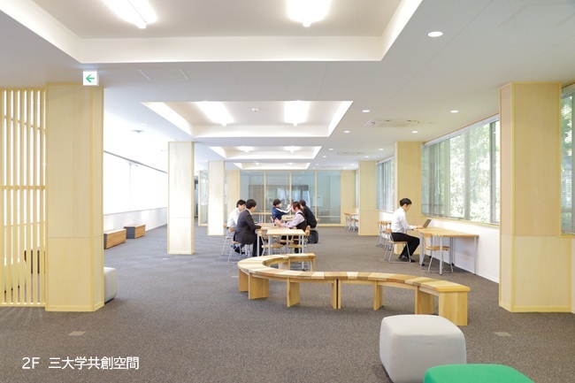 邂逅館(かいこうかん)内の三大学共創拠点、ラウンジの家具の一部は、東京農工大学基金のご支援により整備させていただきました。